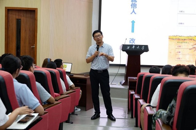最后,学院党委副书记、纪委书记李强副教授以“新起点、新征程、新奋斗”为主题与同学们进行深入交流。他向新生们表示热烈的祝贺和欢迎,详细介绍了学校和学院发展历程,以及学院在师资队伍、科学研究、Betway必威西汉姆联官方网站等方面取得的突出成绩。李强副书记从有关“大学的几点思考”出发,回归到人生成长的感悟。他告诉同学们“所有值得去的地方,都没有捷径”!