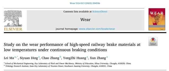 点击:717 近期,betway必威西汉姆联马蕾副教授在极端环境高铁制动材料摩擦磨损性能研究方向取得重要成果,其中一项成果在国际机械工程学科TOP 期刊Wear(中科院一区,IF=5)发表,西华大学马蕾副教授为第一作者,做了大量科研工作。