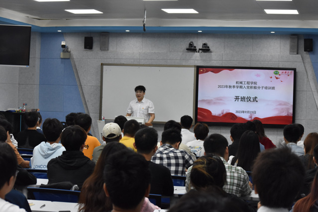 点击:141 为深入学习贯彻党的二十大精神,加强对入党积极分子的培养、教育和考察,切实提高入党积极分子的理论素养和党性修养。9月23日上午9点,betway必威西汉姆联在5B210举行2023年秋季学期入党积极分子培训班开班仪式。机械工程学院党委书记郑宇,党委副书记、纪委书记李强出席会议,会议由学生党建服务工作站站长焦睿主持。