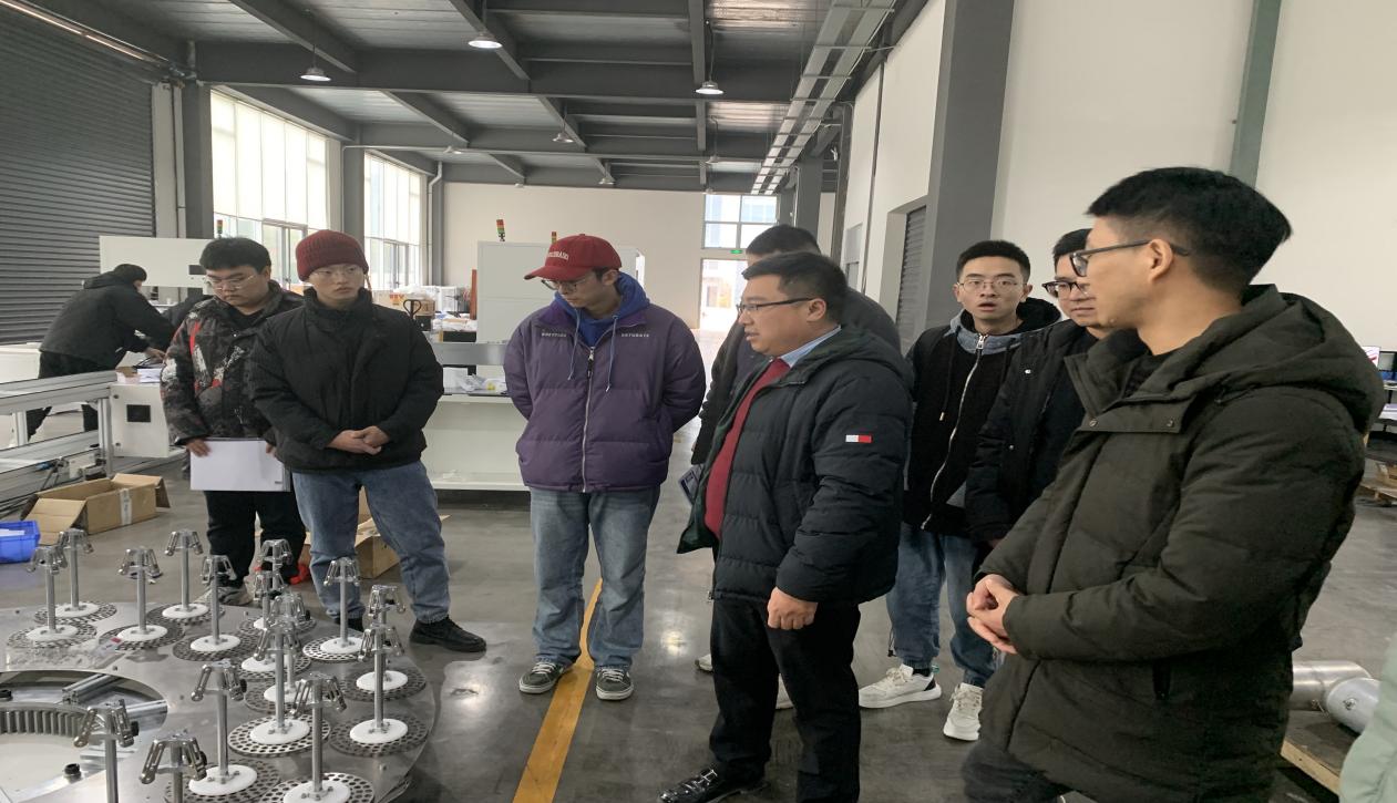 学院一行与壹格尚品科技有限公司总经理、学院2000级机制专业毕业校友向文学座谈交流。座谈会上,李强副书记就学校和学院目前发展的总体情况作了简要介绍,向文学总经理就公司发展、公司主导产品、人才需求与培养等方面做了详细介绍。随后,师生一行在公司人力资源部主管郑骐的带领下参观了公司新厂区和即将投入使用的生产线。参观过程中郑主管为师生们介绍了公司产品生产和制造的工艺细节,让师生们感受到了企业的发展成果和现代制造的魅力,体会到了有温度的制造业。