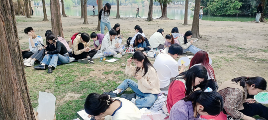 景色优美的天籁湖旁,悠然作画的同学构成春日里一道独特的风景线。本次活动,不但丰富了同学们校园文化生活,更能加深协会同学间的友谊,展示了大学校园生活的活力与多彩。