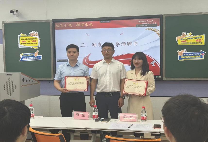 经过激烈角逐,成长赛道方面,2022级机械电子工程专业李京蔚同学荣获一等奖、2023级工业设计专业陈欣和机械设计制造及其自动化专业唐浩2名同学荣获二等奖,2021级工业设计专业李鹏程、2023级机械设计制造及其自动化专业罗义洋、2023级工业设计专业杨丽丽3名同学荣获三等奖;就业赛道方面,2021级机械电子工程专业王喻林同学荣获一等奖,2020级机械设计制造及其自动化专业何远程同学、2021级机械电子工程专业杨子锋同学荣获二等奖,2020级机械电子工程专业范国锋、2021级机械电子专业王晨皓和曾钱明3名同学荣获三等奖。李强副书记和各位评委老师为获奖选手颁发荣誉证书并合影留念。