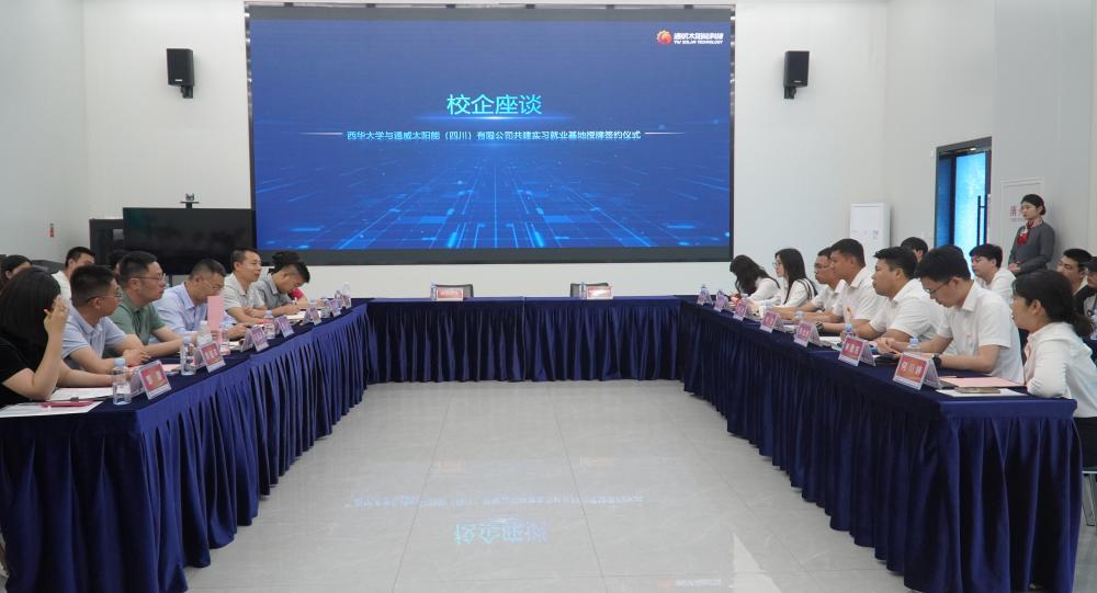 学校一行受到了通威集团总经理助理叶龙及其他部门负责人的热烈欢迎。在叶总的引导下,我们参观了通威集团金堂基地展厅,了解了整个集团从成立到发展壮大的各个时期的成果和荣誉;参观了基地的5G智能制造生产车间,直观感受了通威在新能源行业和智能制造领域的精益化管理和实力。座谈环节,师生与企业进行了良好的互动交流,学校与通威集团签订了校企合作框架协议并相互授牌,进一步达成了友好合作意向。