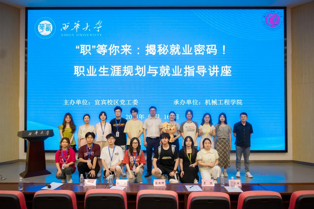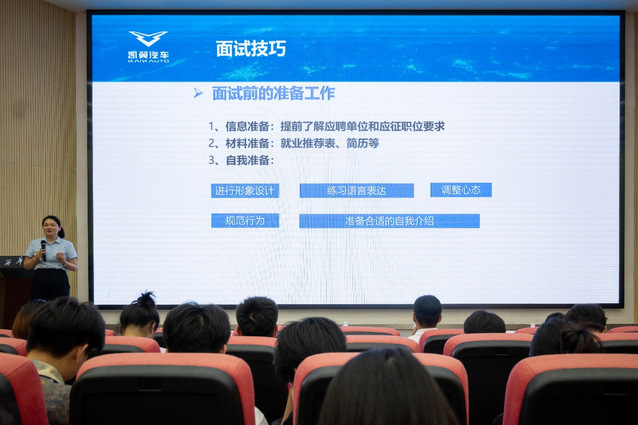 点击:164 为全力助推2024届毕业生高质量充分就业,抢抓就业关键期,搭建校企合作平台,做实做细就业服务工作,5月16日,在西华大学宜宾校区101报告厅,成功举行由校区党工委主办,机械工 程学院“机育”职业发展与就业咨询工作室承办的“‘职’等你来:揭秘就业密码”职业生涯规划与就业指导专题讲座。讲座邀请到宜宾凯翼汽车有限公司人力资源经理陈新群,她以“坚定信念,追逐梦想——当代青年如何顺利走上工作岗位”的主题为同学们开展职业生涯规划与就业指导。宜宾校区学生工作办公室主任杨万能、betway必威西汉姆联党委副书记 纪委书记李强,betway必威西汉姆联辅导员薛敏、周岐燃,来自宜宾校区betway必威西汉姆联、经济学院、汽车学院、计算机学院、管理学院和文新学院近300名学生参与讲座。