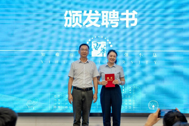 宜宾校区学生工作办公室主任杨万能为陈新群经理颁发“机育”——“青蓝”职业发展与就业咨询工作室企业导师聘书。杨万能表示,学校积极邀请企业导师进校园,多渠道拓宽就业育人模式,想方设法为同学们提供多元化的职业生涯规划与就业指导,让同学们对企业感受更深,对市场把握更准,对自我剖析更实,旨在有利于培养学生树立正确就业观念,找准实现人生价值的正确方向。