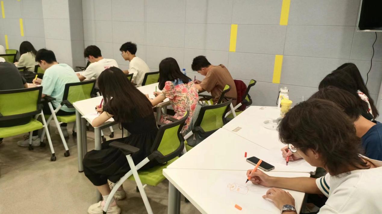 讲座开始,吴颖老师为每位同学提供一张水彩笔和画纸,让同学们能够将自己的压力画在纸上,从它的大小、质地、形状、颜色等方面感受自己的压力,并让大家分享看到它时的感受。