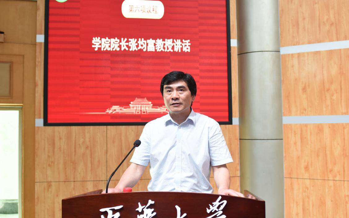 学院院长张均富教授作总结讲话。他向获得表彰的同学表示热烈祝贺,并对即将离校的2024届毕业生们表达了美好的祝愿。他从懂得感恩、坚持学习、担当作为三方面寄语所有毕业生。他希望同学们在任何时候都不要丢失青春的朝气,在顺境中趁势而为,在逆境中破浪前行;希望同学们诚实做人、踏实做事,眼里有光、心中有梦,永远保持前行的动力与热情,做新时代有为青年。