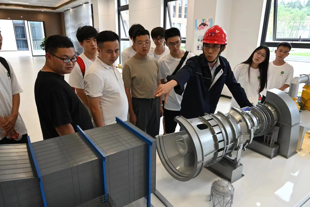 首先,团队参观了企业的实际运营和最新技术应用。在项目经理的介绍下,队员们对先进的H级燃气—蒸汽联合循环发电技术有了基本的了解。队员们了解到,公司所采用的先进设备和核心技术仍然只能依靠从部分发达国家进口,特别是来自日本和德国的低污染、高效率设备,与之相比,国内设计研发的机组仍落后较大。