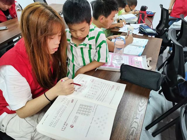 首先由团队成员冯文娇同学通过展示PPT来引导小朋友们对“感恩”概念的了解以及感恩对象认识。志愿者们通过提问的方式让小朋友们参与互动,调动小朋友的积极性和主动性,让他们感受参与活动的意义与价值。随后,由志愿者先对同学们进行作业辅导,有效提高同学们的专注度和完成率。除此之外,团队成员刘佳欣还为小朋友们精心准备了“看图猜成语”小游戏有效拓展了小朋友们的课外知识。