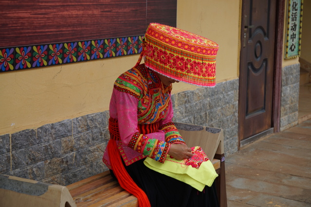 随后,傈僳族刺绣非遗传承人向团队成员展示并讲解了傈僳族的刺绣和织布技艺。与其他绣法不同,傈僳族刺绣没有底图,心灵手巧的妇女完全凭借生产中的灵感和对生活的热爱,在他们的头饰、上衣、裤子、裙子、背包上绣出花团锦簇、色彩斑斓的图案。同时,刺绣过程要求一步一个脚印,正是“磨练意志、和谐交织”刺绣家训的集中体现。从火麻采摘到织成白布,要经过割、晒、淋、泡、理、漂、纺织等20多道工序,都是使用傈僳族自制的工具纯手工完成。