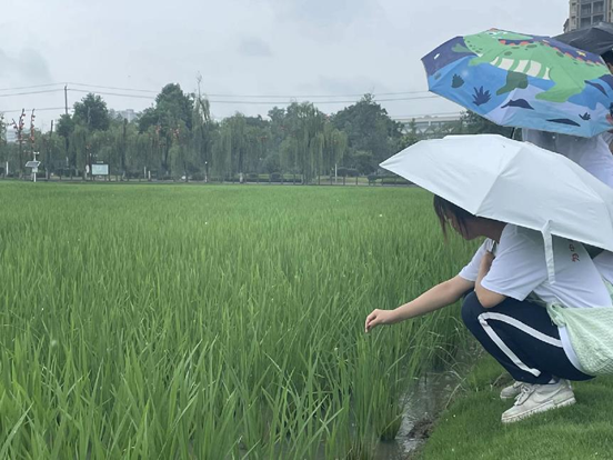 成都市杂交水稻试验田是2005年袁隆平院士亲自来到德源镇建起的,占地约100亩,分中心的建筑配套约30亩。并且经过多年的发展和建设,试验田被打造为集杂交水稻科研、农业观光旅游、青少年科普教育基地多地于一身的新基地;这不仅能够为青少年们展示传统农业和现代农业,还能够让孩子们认识农业、对农业感兴趣,并让更多孩子投入到农业研究创新当中。今天农机研究小纵队来到试验田,在负责人讲完注意事项后,大家开始了试验田参观。迎着小雨,实践团队的成员们走在田间,感受着这田野间的美丽;俯下身子一伸手,便能感受到禾苗的茁壮和生机。路途中队员们会阅读每一处的标语和介绍,从中体味着袁隆平院士和其他科学家辛辛苦苦的付出以及无数次顶着炎炎烈日或寒风暴雨从田中亲自去测出的研究数据,而如今这一片片绿油油的景象正是对他们的付出最好的答复,在参观完试验田后,本次活动圆满结束。