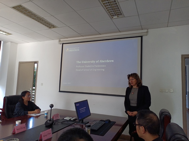 Ekaterina Pavlovskaia教授介绍了英国阿伯丁大学的办学历史、科学研究、荣誉成就以及在爱丁堡学习和生活的保障等情况,并就双方研究的领域表达了希望与西华大学机械工程学科建立合作的意向。