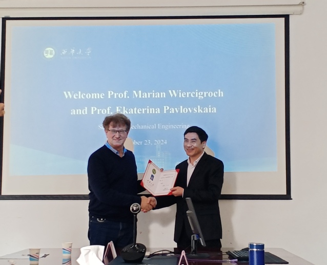 20241023日,英国爱丁堡皇家学会院士、阿伯丁大学Marian Wiercigroch教授一行应邀来我院交流访问。会议由张均富院长主持,国际交流与合作处、副院长朱维兵教授以及青年博士代表参加座谈会。