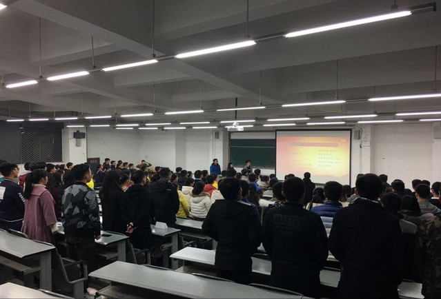 在主持人简短的开场之后,晚会在同学们嘹亮的国歌声中拉开序幕。首先,晚会播放了一段关于“129爱国运动”的视频资料,点燃了同学们的热情,紧接着便是此次晚会的重头戏——由学院团委学生会各部门组织的表演节目。各部门的表演都是以红歌为主、辅以各种表演形式,由此来歌颂爱国精神,展现爱国情怀。唱歌、朗诵、情景剧、甚至是舞蹈,以及穿插在节目之间的问答小游戏,都带起了晚会一波又一波的高潮,学生会的各位可谓是将自己的表演天赋表现得淋漓尽致,最终晚会在气氛轻松活跃的猜歌小游戏中落下帷幕。