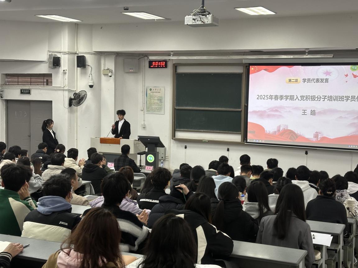 开班仪式在庄严的国歌声中拉开序幕。由本期入党积极分子学员代表王皓和发展对象学员代表陶鑫进行了发言。他们结合入校以来的学习生活及思想变化,表达了对党的忠诚和向往。同时,两位同学结合自己的学习经历向全体学员提出倡议,鼓励大家珍惜学习机会,严守纪律,共同进步,争做学生中的先锋模范。