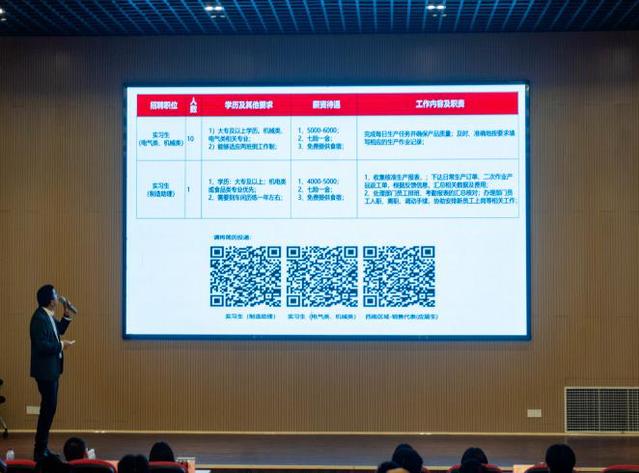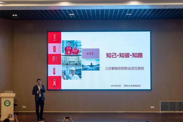 随后,陈尧经理为现场来自各学院160余名学子带来“知己·知彼·知路—三步解锁你的职业定位密码”的就业指导讲座。陈经理通过视频和案例,从当前就业环境,自身发展定位,生涯规划发展方面向现场的同学开展讲座,引发在场学生的深刻思考,为现场学子构建起立体化的职业发展认知体系。讲座结束后,陈经理进行加多宝集团企业招聘宣讲,发布多个校招岗位。加多宝集团四川厂区人事主管张丽珠现场收集同学们的求职简历并回答同学们的提问。经初筛,现场11名同学收到面试通知,后续进行面试和复试环节。