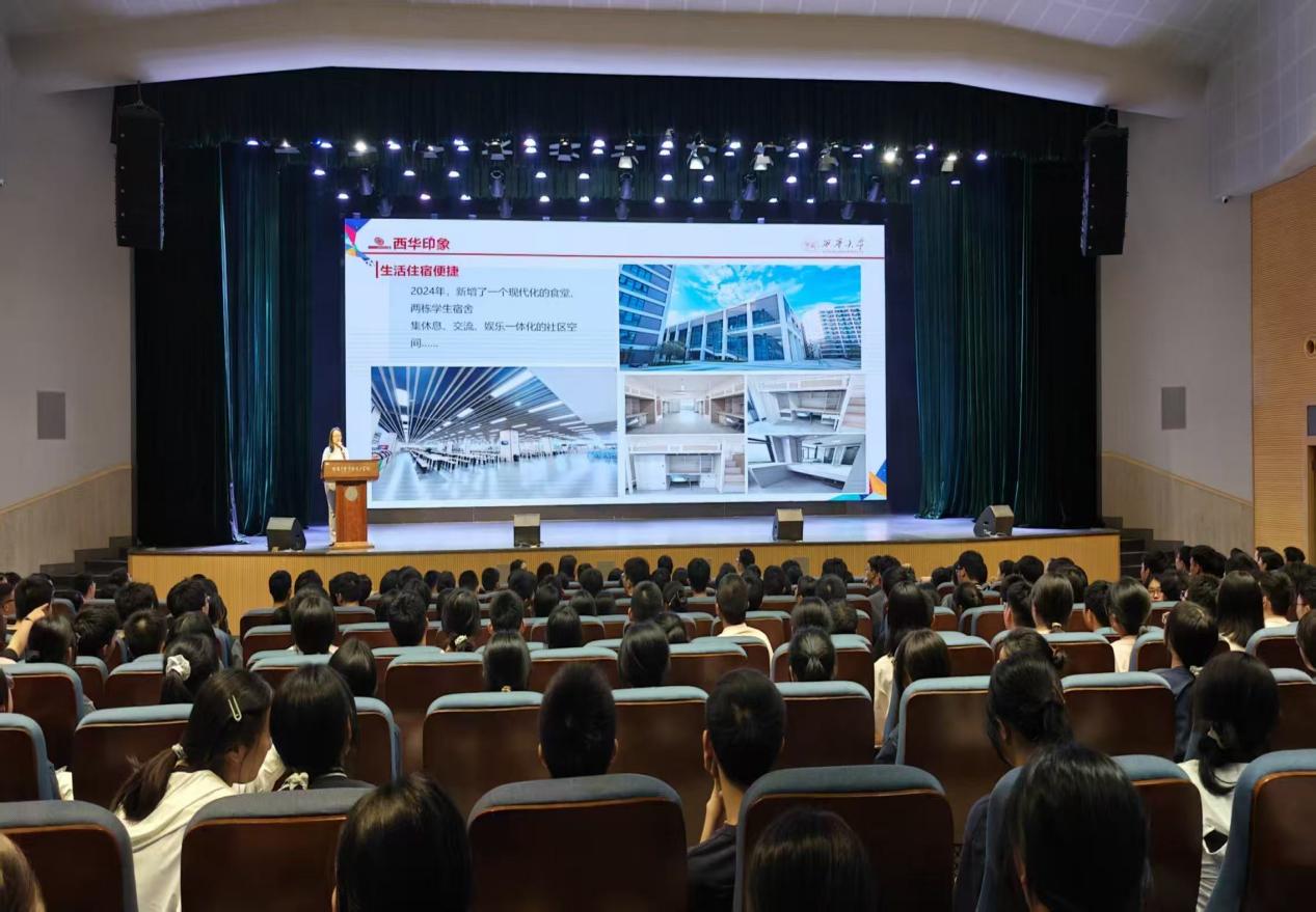 结束校地座谈后,工作组一行在川绵高级中学大礼堂举行专场招生宣讲会。李强代表西华大学授予川绵高级中学 “优质生源基地” 牌匾,并表示未来将通过学术资源共享、职业规划指导等方式,探索Betway必威西汉姆联官方网站新模式。川绵高级中学执行副校长赵奎良认为,优质生源基地建设将拓宽学生升学渠道,推动两校在科技创新、学科竞赛等领域的深度合作。钟雯教授以“西华有你更精彩”为主题,向 400 余名高三学子详细介绍西华大学办学历史与学科优势;李忠钢以“你的青春不只一面”为题,展示了学校学生综合素养培养体系。