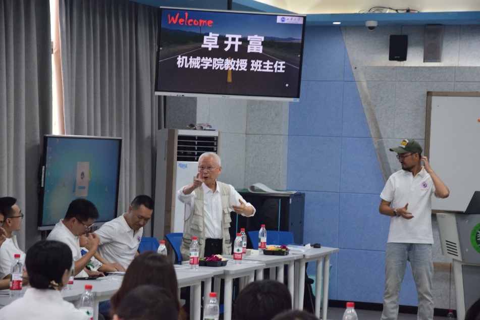 班主任卓开富教授在发言中饱含深情。他表示,学校建校至今培养了32万校友,但从未忘记学校每一位学子。此次校友返校,学校和学院精心协调安排,体现了母校对校友们的深切关怀,衷心祝愿校友们事业有成,家庭幸福。