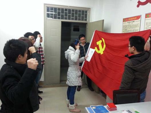 在鲜红的党旗下,张威、肖洁、蒋丽、易亮、廖金波等人举起右手握拳宣誓:“我志愿加入中国共产党,拥护党的纲领,遵守党的义务……”。振奋人心的宣誓词响彻整个楼道,各支部书记对新加入的成员表示欢迎与祝贺,也提出了“发扬党的优良传统,牢记全心全意为人民服务的宗旨,在各自的岗位上加倍努力工作,充分发挥党员的先锋模范作用”的希望。新党员也表示在以后的生活中始终追随党的脚步,不断学习完善自我,成为一名合格的共产党员。