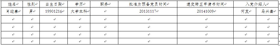 根据机械工程与自动化学院支部委员会2014年11月6日决定,经机械工程与自动化学院研究生2014级党支部提名,机械学院党总支审批,拟将肖迎春同志转为中共正式党员,现将有关情况公示如下: