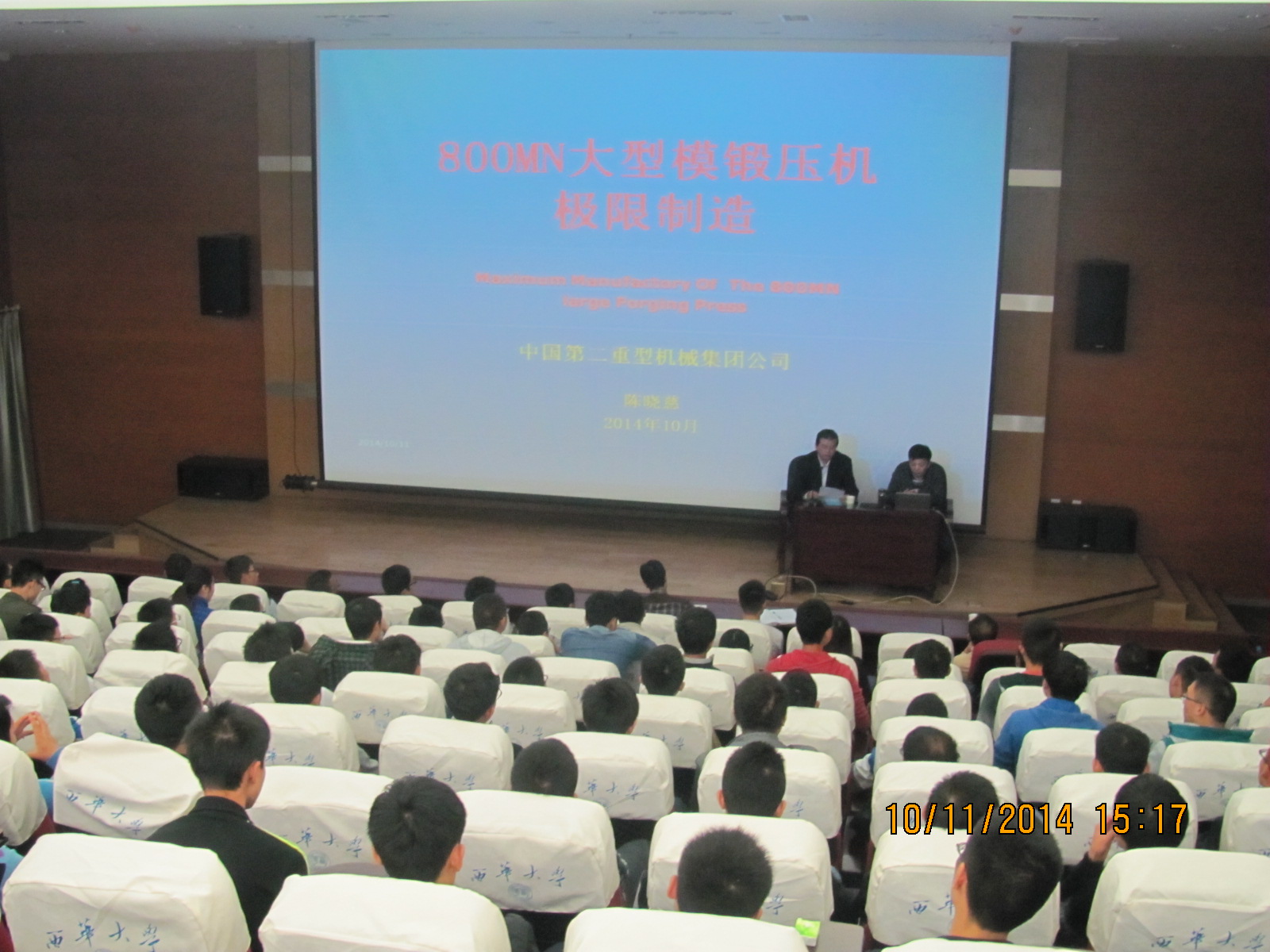 陈总工作为中国重大装备制造行业的技术,对宏工程的概念、机械行业极限制造的典型产品事例、二重的8万吨模锻压机极限制造的若干重大问题、极限制造的发展趋势等重要问题做了系统而生动的讲解。报告人的讲解深入浅出,对极限制造这一深奥的理论问题不时运用生动的案例和活泼的语言进行阐释,极大地吸引了同学们的兴趣,场面效果十分引人。