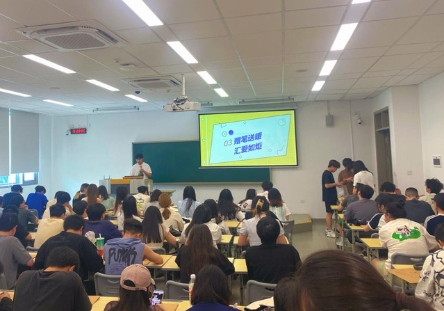 “赠笔送暖——汇爱如炬”环节,是朋辈情谊的温暖传递。定制文创签字笔,承载着关怀与支持,写有自己名字和励志语录的笔,成为同学们倾诉压力的载体。同学们用这支笔写下压力,正视自身问题,增强自我觉察能力。在集体的关怀与力量中,心理韧性得以提升,面对困难与压力的信心愈发坚定,为心理健康发展筑牢坚实屏障。