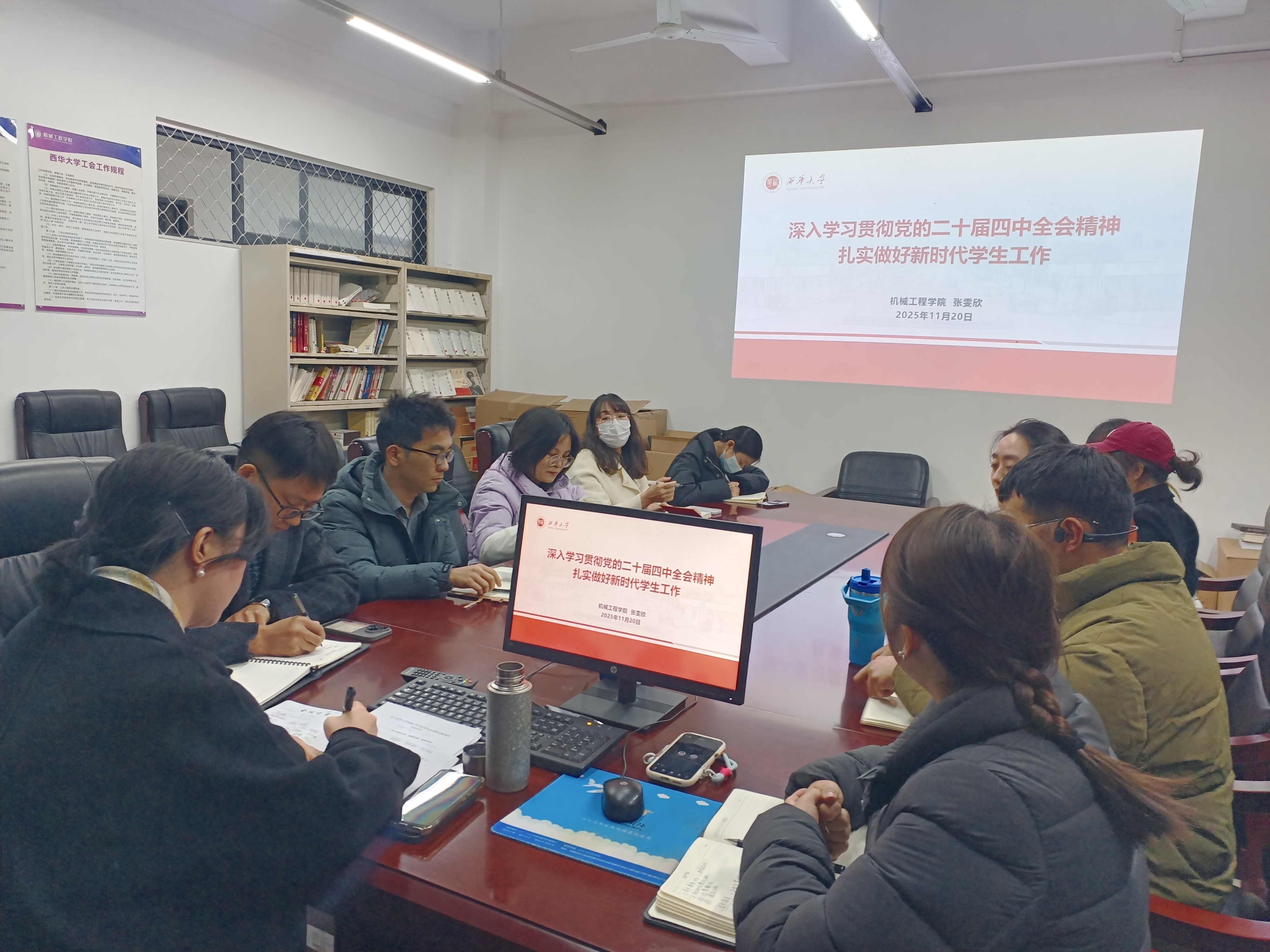 点击:40 为全面贯彻落实党的二十届四中全会精神,进一步提升学生工作队伍的政治素养与育人能力,11月20日下午,betway必威西汉姆联在5A204会议室召开专题宣讲座谈会。会议由学院党委副书记、纪委书记李强主持,党委书记张雯欣作主题报告,全体辅导员参加学习。