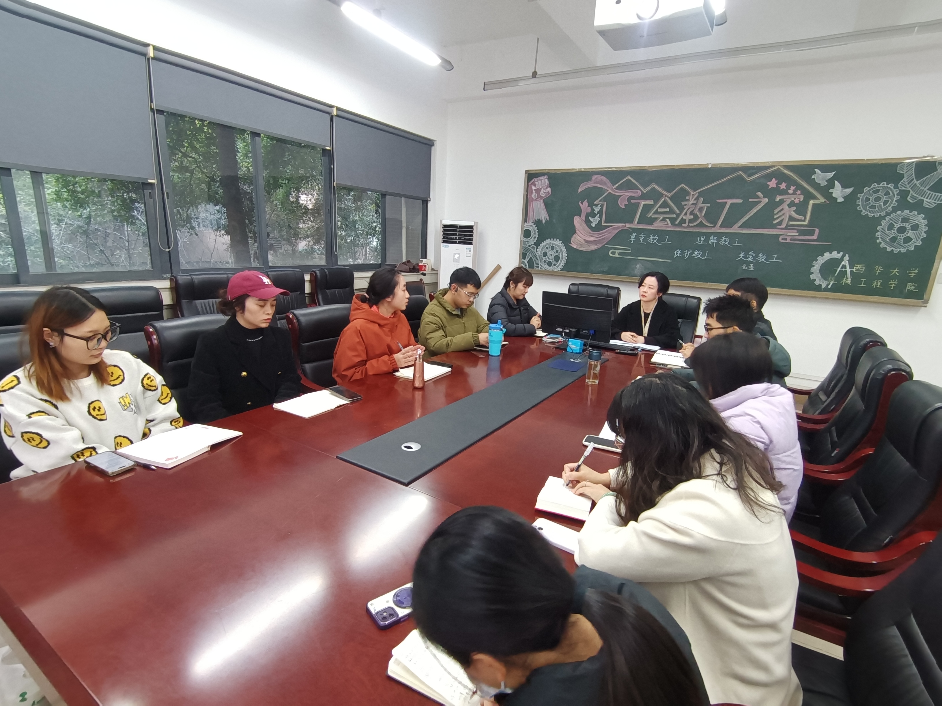 与会辅导员围绕自身学历背景、带班情况及专项工作等内容逐一发言,汇报了近期在学生思想政治教育、期末复习备考、防诈骗安全教育等方面的工作进展,并就下一步工作计划进行了交流。张雯欣认真听取每位辅导员的发言,细致记录大家提出的问题与建议,深入了解辅导员队伍的实际状况和工作难点。