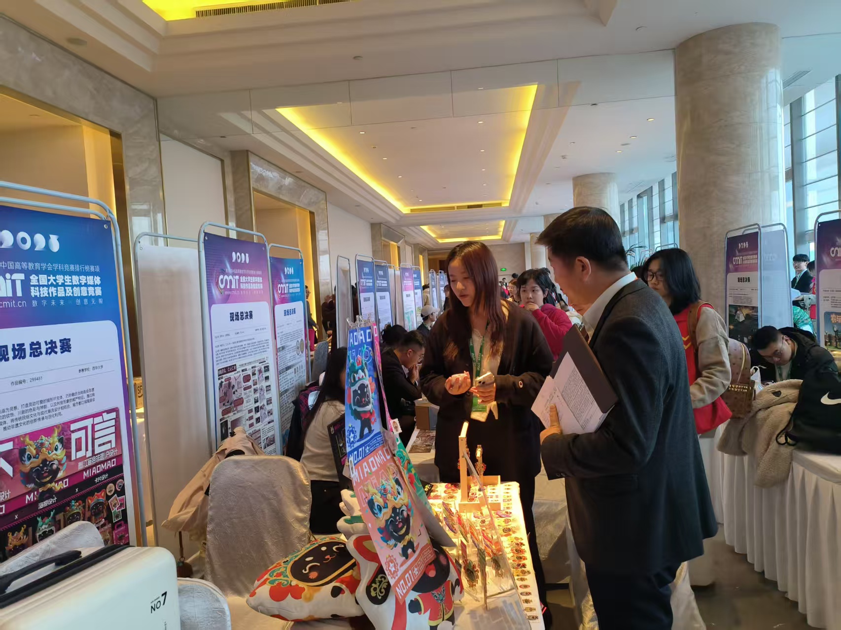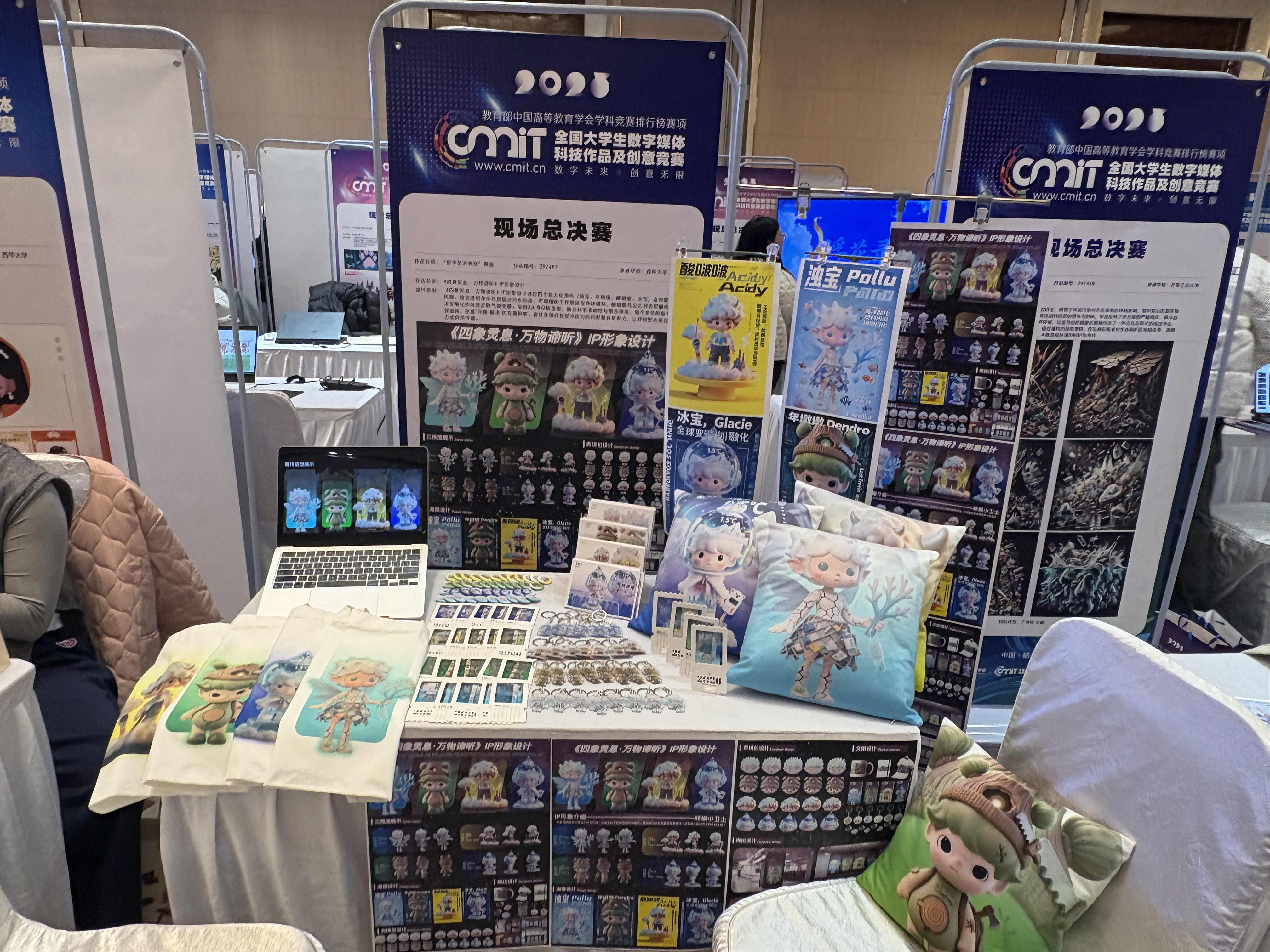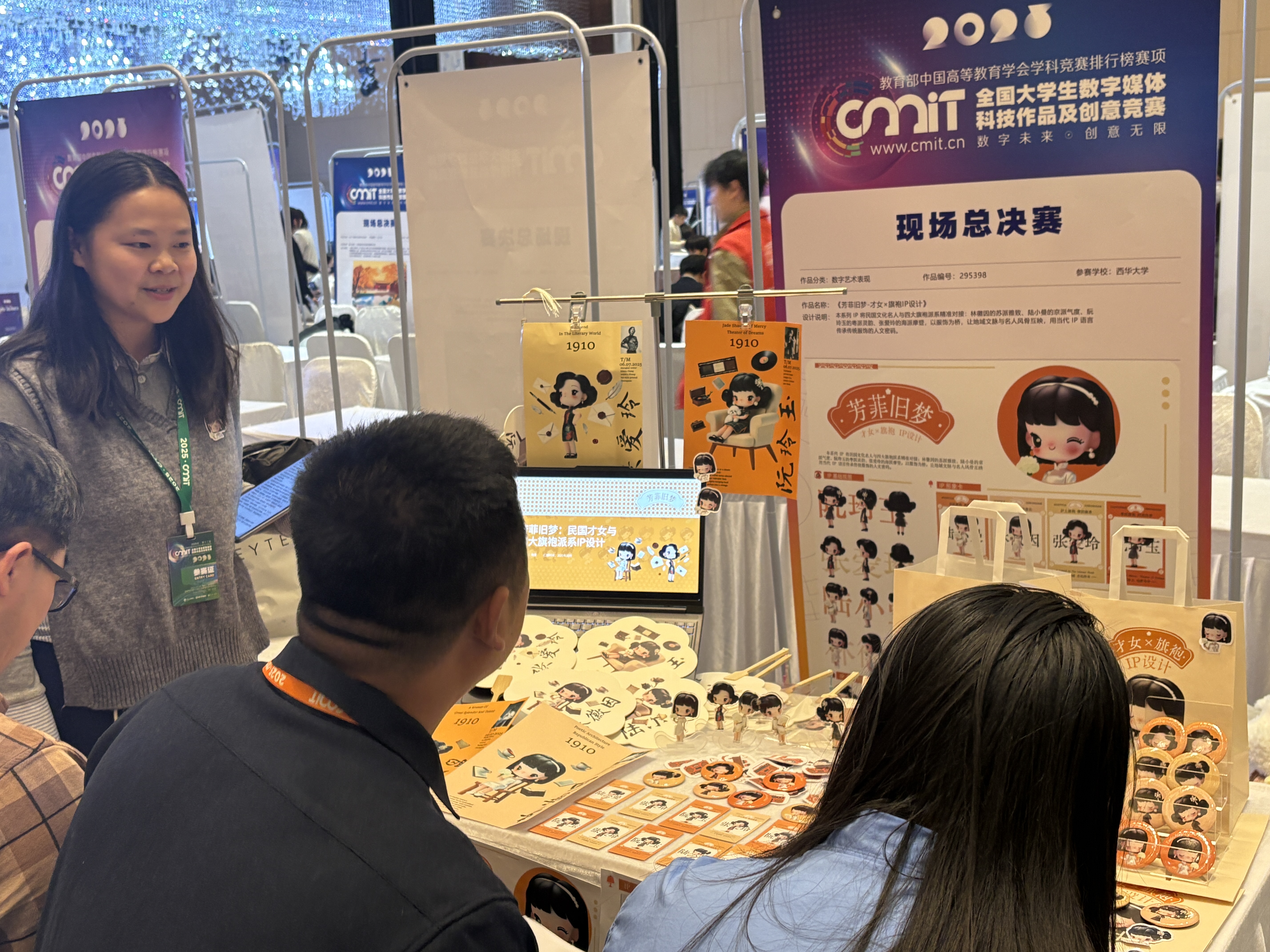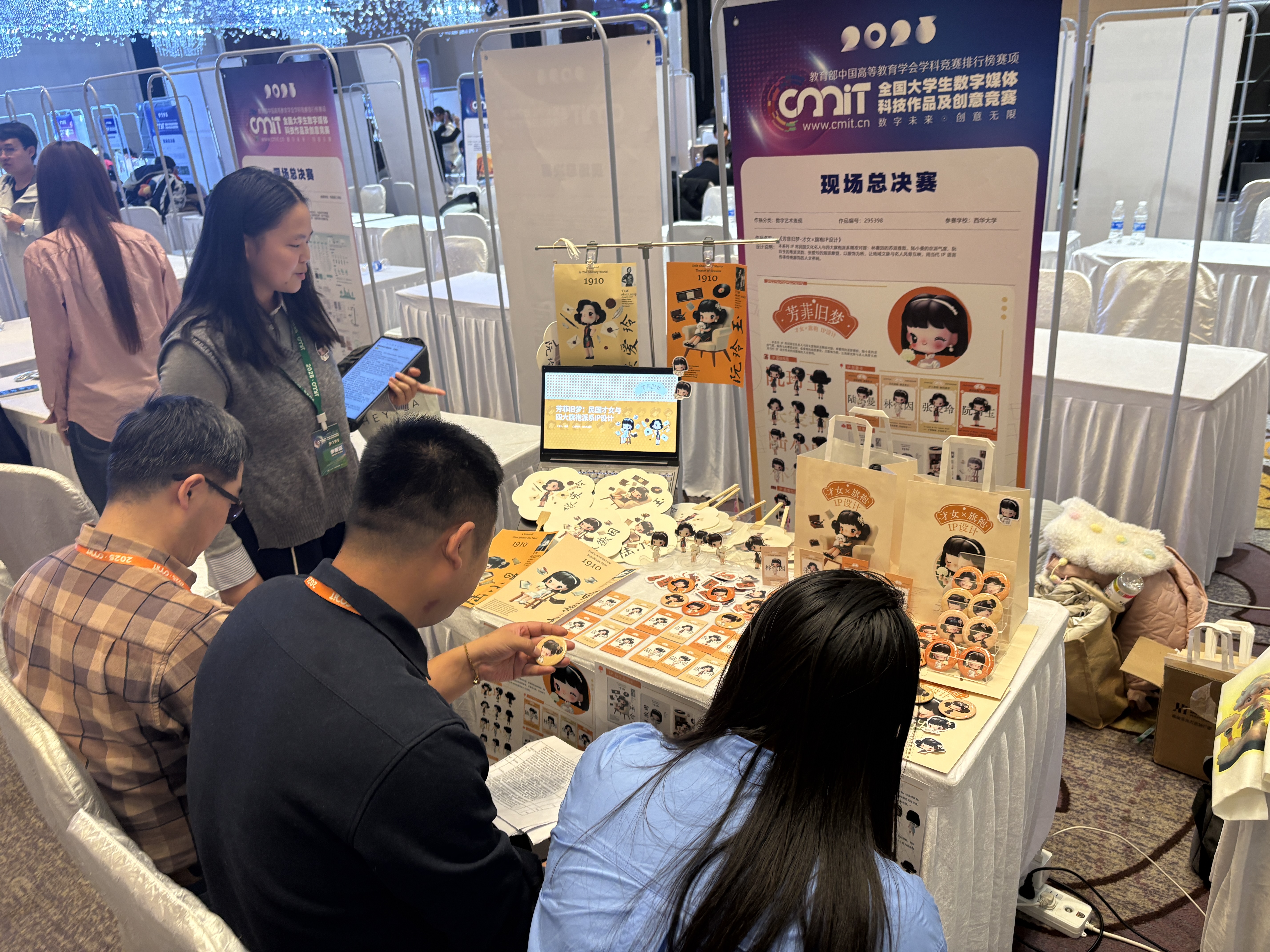 本次教研活动简介 | 一、活动背景介绍 数字创意设计类课程是工业设计专业的重要实践方向之一,旨在培养学生的跨媒介创新能力、数字表达能力以及文化转译能力。随着信息技术与文化产业的深度融合,如何将传统文化资源转化为具有时代特征与传播价值的数字作品,已成为当前设计教育改革的重要议题。在教学过程中,不仅要提升学生的技术应用能力,更要通过创作实践,引导学生关注文化传承、民族精神与时代价值,增强文化自信与社会责任感。 本次教研活动主要围绕学生参与全国大学生数字媒体科技作品及创意竞赛这一实践任务展开。学生作品以中华优秀传统文化为创作源头,结合当代数字媒介技术进行视觉转译与形象重构。教研活动以参赛准备与现场展示为契机,重点探讨数字媒体创意设计教学中如何通过项目实践引导学生在真实情境中深化对文化内涵、艺术表达与社会价值的理解,推动专业课程与思政教育、创新实践、文化传承之间的有机融合。 二、讨论过程 论主要围绕以下几个关键点展开: 1、参赛主题的设定与文化内涵。 教师们首先围绕学生作品的主题选择进行了深入讨论。通过对传统庙宇文化、民国女性形象以及中国古代“四象”文化的提炼,作品尝试将传统文化资源转化为可感知、可传播的数字形象,探索传统文化在当代语境中的新表达路径。大家一致认为,数字媒体作品不仅要追求视觉效果的创新,更应关注其文化深度和社会意义,在传统文化逐渐受到年轻群体关注的背景下,这类主题具有重要的现实价值与时代意义。 2、思政元素与文化价值的融入方式。 在作品创作与展示过程中,教师们重点讨论了如何将文化自信、民族精神、历史传承等思政元素有机融入数字媒体设计之中。通过角色塑造、色彩意象、叙事逻辑和文化符号的运用,学生在作品中表达出对中华优秀传统文化的尊重与认同,使作品在呈现艺术美感的同时,承载起传播文化、增强文化认同的社会责任。教师们认为,这种“以文化为核心、以设计为载体”的创作方式,有效实现了专业教育与思政教育的融合。 3、现场展示与答辩方式的优化。 围绕全国总决赛现场展示与答辩环节,教师们对展台布置、作品呈现形式以及学生答辩策略进行了细致讨论。大家提出,应采用多模态展示方式,如实物文创、IP衍生品、数字影像、展板讲解等多种形式相结合,使观众和评委能够立体地理解作品的设计逻辑。同时强调,学生在答辩过程中不仅要清晰说明创意构思与技术实现,更要准确表达作品的文化价值与社会意义,从而增强作品的整体说服力与感染力。 三、讨论结果 经过充分的讨论,大家达成了以下共识: 1、设计作品要突出文化价值与社会责任感。 所有参与全国大学生数字媒体科技作品及创意竞赛的作品,均应体现学生对中华优秀传统文化的尊重与传承意识,同时关注作品在当代社会中的文化传播功能。教师们一致认为,数字媒体作品不仅要具备技术性和艺术性,更要承载文化记忆与社会责任,使设计成为文化表达的重要载体。 2、传统文化与数字媒介技术的深度融合。 在学生创作过程中,应进一步加强传统文化元素与现代数字技术之间的结合关系。教师们强调,学生应在尊重传统文化内涵的基础上,运用数字建模、视觉叙事、虚拟形象塑造等手段,实现传统文化的当代转译与创新表达,增强作品的时代感与传播力。 3、展示形式应增强多模态表达与沉浸体验。 在全国总决赛现场展示中,作品的呈现形式应注重多模态融合,通过展板、数字影像、实物展示、衍生文创等多种方式,构建具有文化氛围和情感共鸣的展示空间。教师们认为,沉浸式的展示体验有助于评委和观众更直观地理解作品背后的文化逻辑与设计理念,从而提升作品的整体感染力。 4、强化“以赛促教、以赛促学”的教学导向。 通过本次参赛实践,教师们进一步认识到,将高水平学科竞赛融入课堂教学,对提升学生综合能力具有重要推动作用。大家一致提出,在今后的教学中,应继续以竞赛项目为载体,引导学生在真实情境中进行创作实践,强化其文化思考能力、问题解决能力和创新意识,使思政教育与专业教学实现深度融合。 四、实践过程 在讨论的基础上,教研室的老师们指导学生们开始了全国大学生数字媒体科技作品及创意竞赛总决赛的现场展示和实践过程。实践步骤如下: 1、参赛作品制作与完善。 学生们根据前期教研讨论的意见,对所有参赛作品进行了进一步完善与深化。重点从文化内涵表达、视觉形象塑造和整体呈现效果等方面进行优化,使作品在保持创意性的同时,更加突出传统文化精神与时代审美特征。每件作品都围绕中国传统文化主题展开,力求通过数字媒介形式展现其独特的艺术价值与文化内涵。 2、展位布置与现场准备。 教师和学生共同完成了全国总决赛展位的布置工作。现场采用主题化、系列化的展示方式,将展板、IP形象、文创产品、数字影像等内容进行系统陈列,形成富有文化氛围的展示空间。通过合理划分功能区域,使作品从平面、立体、动态等多种角度呈现出完整的设计体系,增强了作品的观赏性和沉浸感。 3、现场展示与答辩讲解。 在比赛现场,学生围绕参赛作品进行系统讲解,重点介绍创意构思、设计思路、技术手段以及文化内涵,并就作品的社会价值与现实意义进