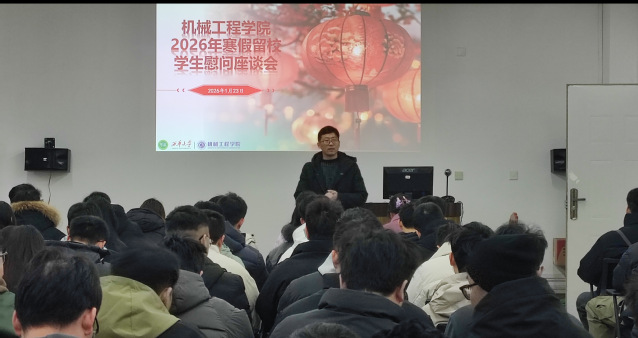 岁暮天寒,情暖人心。2026年1月23日,在2026年新春佳节即将到来之际,学校党委学生工作部副部长、学院党委副书记纪委书记李强,学工办主任陈艺丹与辅导员一行带着精心准备的“新春礼包”深入留校研究生实验室并开展慰问座谈会,慰问假期留校学生,交流科研、学习和生活情况并致以亲切关怀和新春祝福。