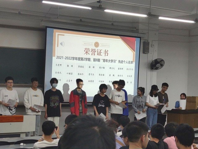 “青年大学习”是青年大学生提高思想认识,凝心聚气的重要途径。会上,对本学期积极完成前8期“青年大学习”的同学予以物质和精神奖励,鼓励他们继续保持良好的学习风气,同时引导广大同学以他们为榜样,积极学、主动学,牢固树立成为社会主义建设者和接班人的远大理想。