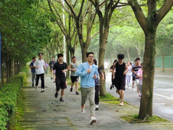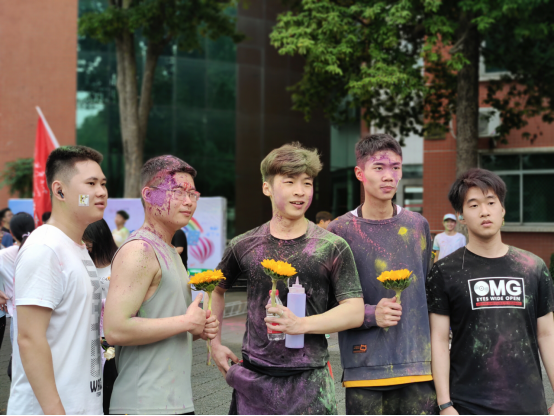 本次彩虹跑共计5公里,分别有五个撒粉点。为了防止跑步过程中同学们出现抽筋等状况,所有参加活动的同学都在领操员的带领下进行了拉伸运动,并一起跳了热身操《本草纲目》 ,同学们积极配合参与,将活动气氛逐渐推向高潮。随后在同学们的倒数声中,彩虹跑拉开了帷幕。同学们经过每个撒粉点都会被被洒上一个颜色,当同学们顺利冲刺完5个撒粉点后,活动现场便会变成彩虹般的现场。