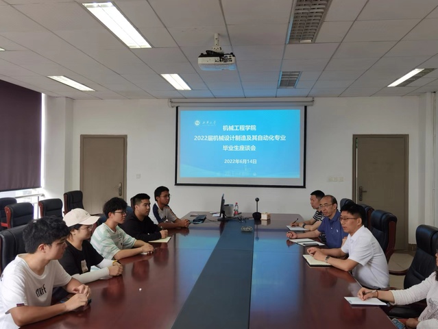 点击:179 2022年6月14日上午11时,betway必威西汉姆联在5A-224召开2022届机械设计制造及其自动化专业毕业生座谈会。党委副书记李强、机械设计与制造工程系主任周利平、副主任钟雯、学生工作办公室主任欧玥、部分专业老师代表以及学生代表参加了本次座谈会。
