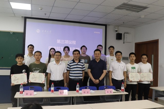 随后,学院4位领导为2022届校友联络员颁发聘书。机械电子工程专业邹睿同学代表校友联络员发言。他代表校友们祝愿母校宏图更展,再谱华章;祝愿老师们工作顺利,身体健康;祝愿同学们一帆风顺,前程似锦。李强副书记和徐全副院长在讲话中谈到,希望各位校友联络员不忘学校、学院嘱托,走上工作岗位后,继续秉持学校“知难而进 自强不息”的办学精神,努力工作,成长成就自己,通过自己的努力和实际行动持续关心关注母校的建设和发展,保持与学校和学院的密切联系,热心服务班级同学,以高度的责任感和奉献精神,为学校和学院的校友工作做出自己积极的贡献。