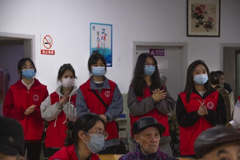 天空渐渐变暗,日落踏着晚霞而来,在一片欢笑中,志愿活动落下帷幕,大家合影留念,试图握住此刻的美好,老人们和志愿者依依惜别,相约下次再见。