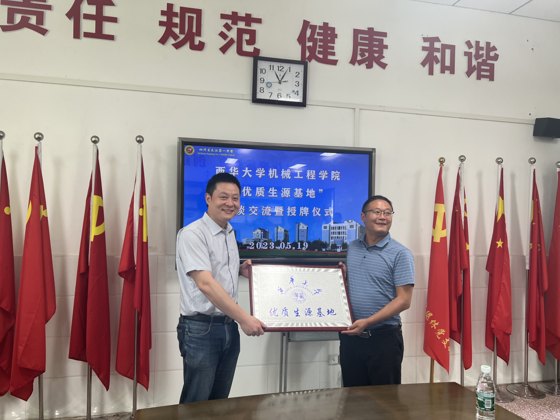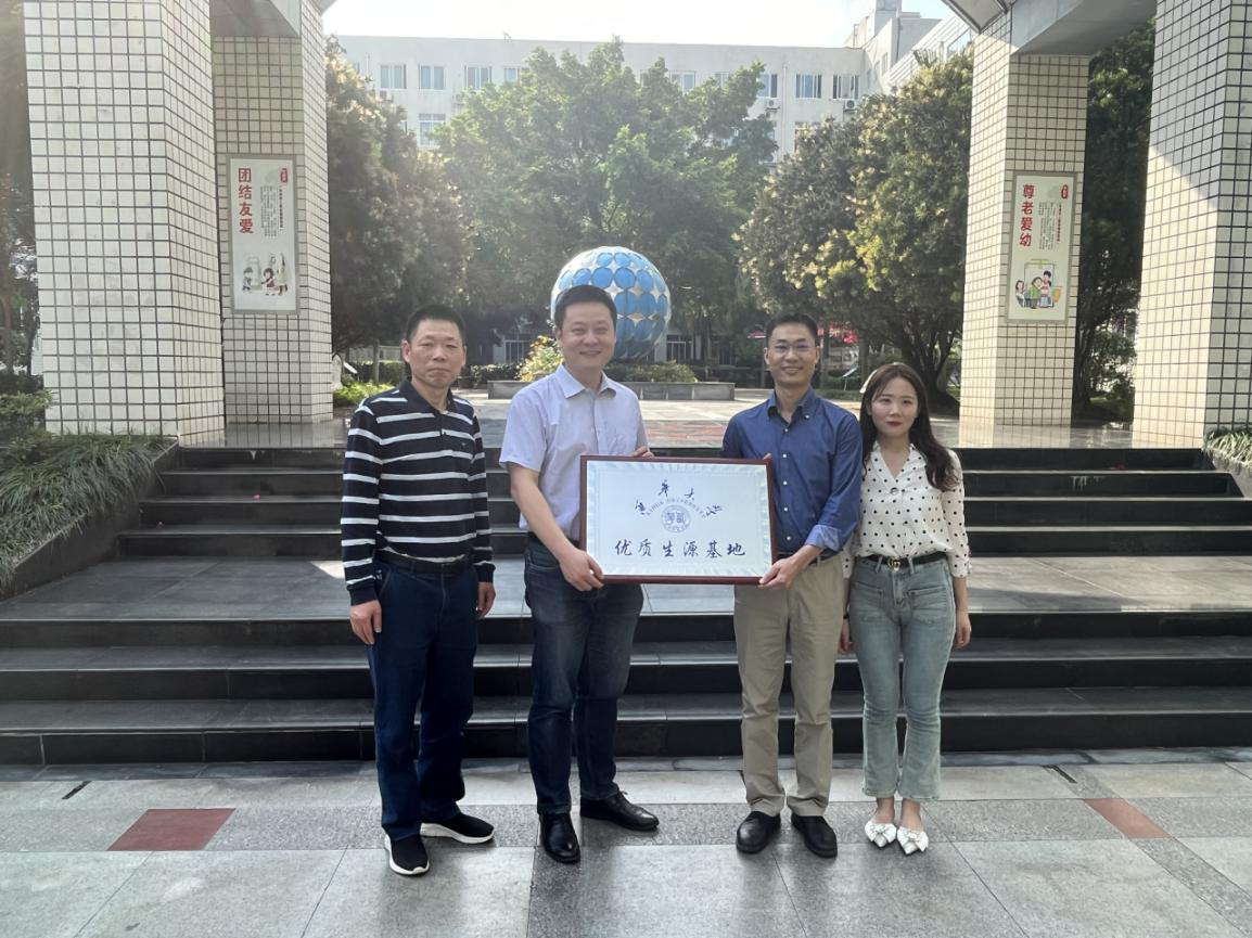 接着,调研小组在聂小鹏校友的带领下,前往乐山外国语学校开展招生宣传。我院党委书记郑宇代表学校向乐山外国语学校授予“西华大学优质生源基地”牌匾,欧建设校长表示,西华大学“优质生源基地”在学校挂牌,将在量小之间搭建一座新的桥梁,促进两校共同发展,推动学校教育上层次、上水平、上台阶。