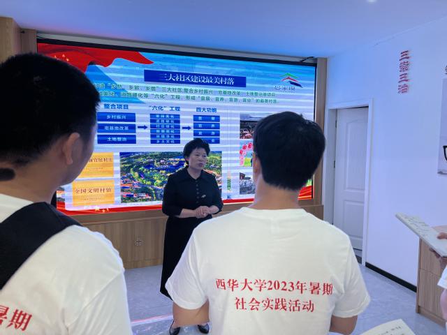 接着,由张建平主任向团队介绍了晏家坝村的乡创学校和建筑设施,白墙灰瓦、绿树红花、低檐窄巷,村庄巷道处处皆景,还有水果采摘、民宿打卡、文创体验等活动,给调研团队带来了耳目一新的体验。