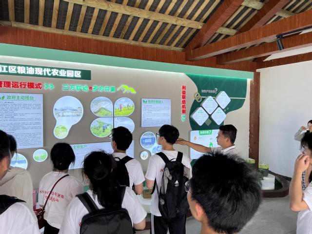 首先,实践团队在丹山镇楠木村支部书记王建勇同志和杨委员的带领下,深入了解楠木村的集体经济发展模式。楠木村通过“三方联动,多方共赢”的管理模式,实现了集体经济的发展。以自身优势发展出楠木村独有的经济模式,以村民为主导,引进外部食品产业,推进土地流转和粮食种植,有效利用农村闲置荒地,促进粮食生产。同时,利用网络直播“带货”的方式,提高农产品的品牌效益,极大地推动村内集体经济的发展。此外,楠木村还特别注重党建工作。他们成立楠木村党组织,并建立便民服务站,秉持“村民办事不出村”、“企业办事不出园区”、“为群众办好事”、“让群众好办事”的宗旨,全心全意为村民服务。