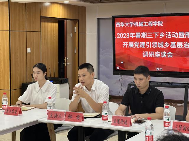 随后,调研团一行与雁江区区委城乡基层治理委分管领导、雁江区基层工作代表在社区二楼“红色讲习所”举行了座谈会。首先,区委区委城乡基层治理委分管副主任从“什么是基层治理”“如何抓好雁江基层治理”等方面,向西华大学调研团详细介绍了雁江区基层治理工作情况,并号召西华大学师生积极关注基层治理、宣传基层治理、参与基层治理,努力学习专业知识,力争将来到基层历练、服务基层人民。接着,实践团队指导老师谭秋亚发言,她表示本次社会实践活动,让调研团队全体师生深刻体验了“资阳是个好地方”的治理气息,感受到了雁江区近年来村、社区的巨大变化。关于学生党建工作,她认为要因地制宜,希望能将社区基础治理的好方法运用到学校学生党建工作实际中。