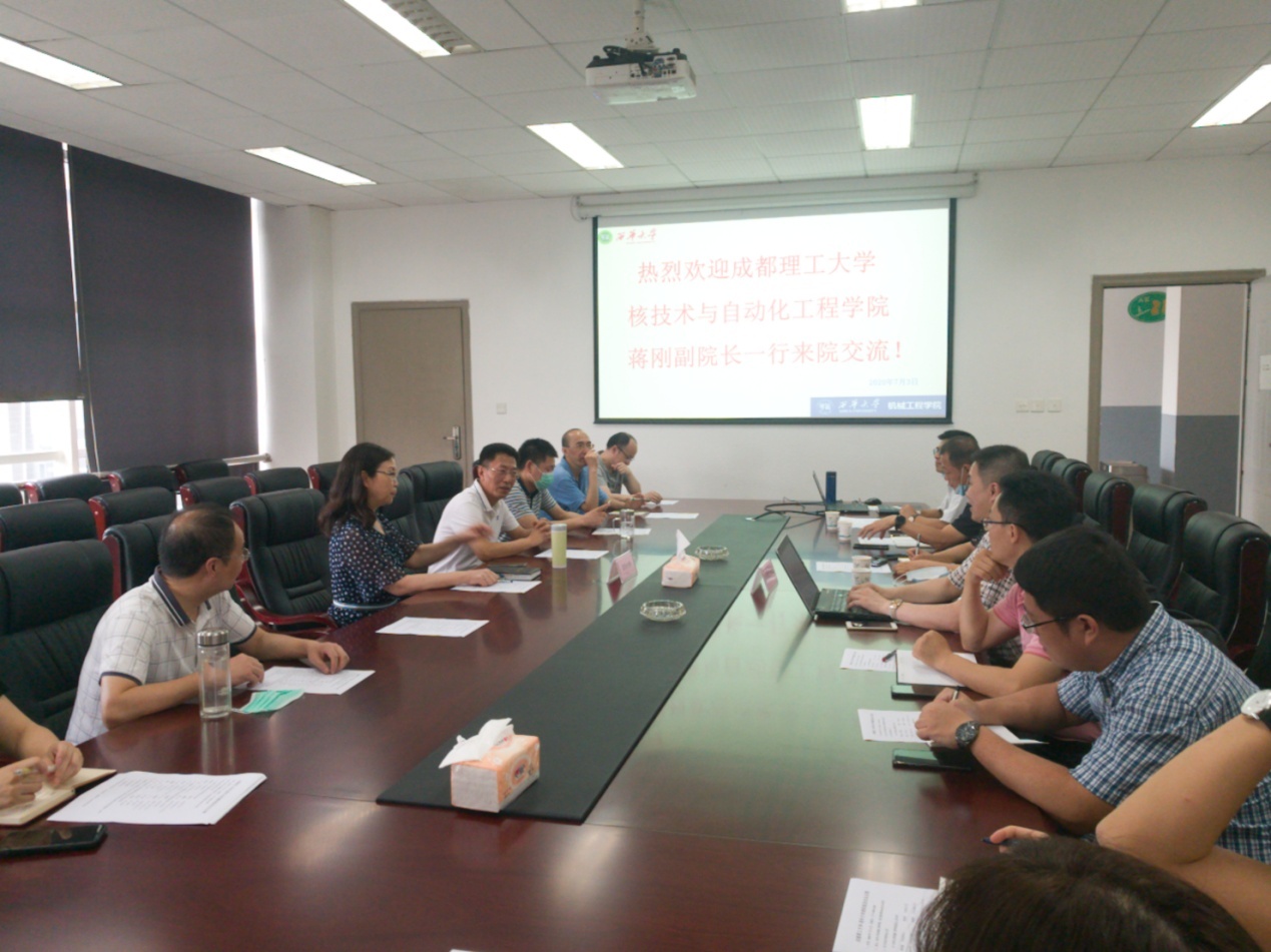 7月3日上午,成都理工大学核技术与自动化工程学院副院长蒋刚一行14人,来betway必威西汉姆联进行交流考察,学院院长杨伟、副院长蔡长韬及部分教师代表在学院5A-224会议室与来宾洽谈交流,杨伟主持座谈会并致欢迎辞。